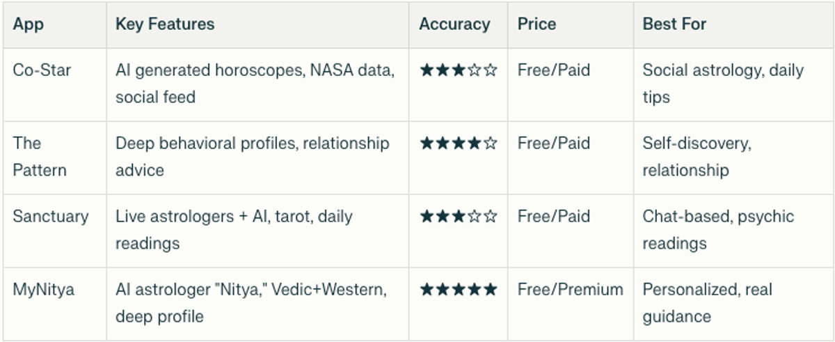 If you've ever typed "best astrology app" into Google, you know just how many options there are in 2025. From smart, AI-driven astrology platforms to apps promising ultra-personal horoscopes, the landscape is crowded. But here's the real question: which astrology app gives you the most accurate, personalized, and human experience? And which one goes deep — knowing not only your sun sign but your secret challenges, patterns, and purpose?