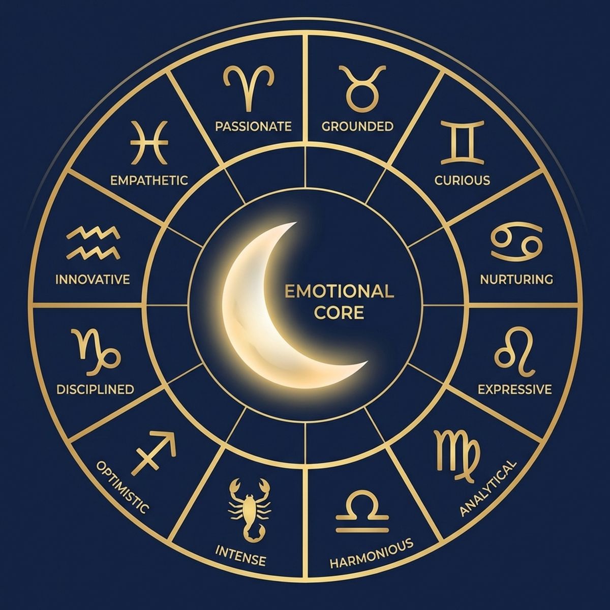 Диаграмма двенадцати лунных знаков с их эмоциональными характеристиками