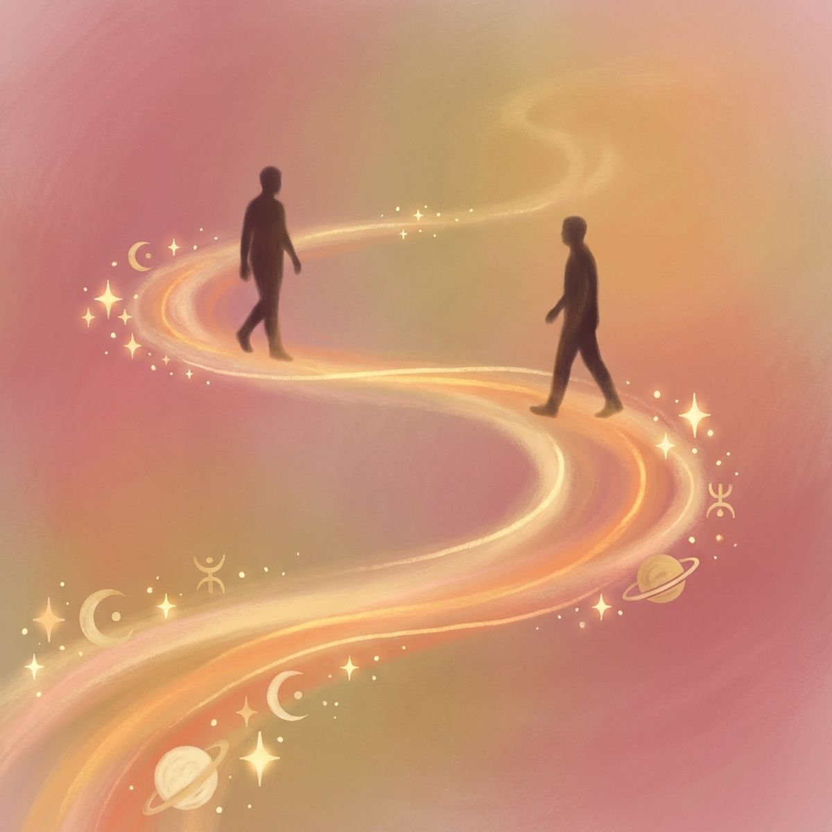 Два силуэта готовы встретиться на астрологическом пути