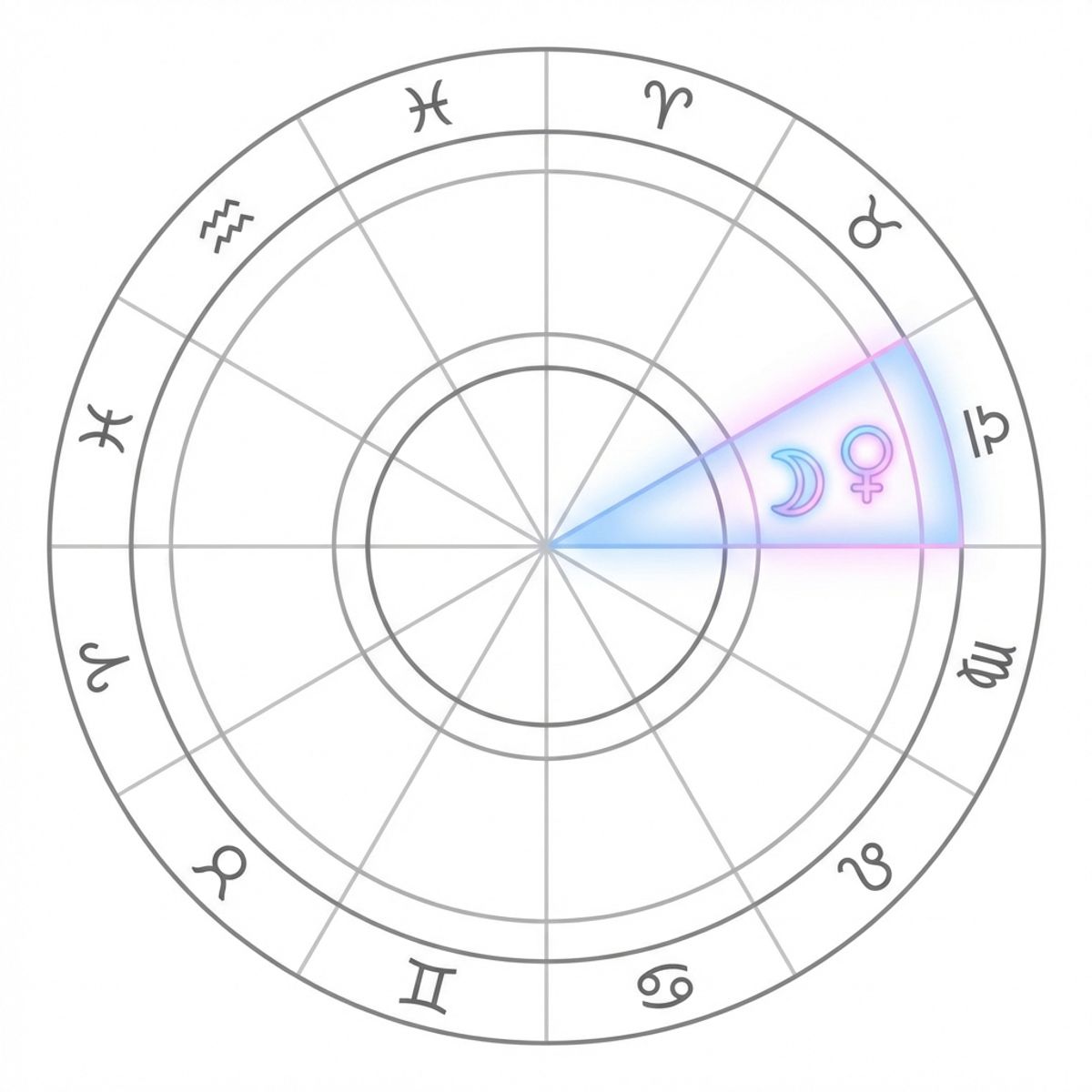 Натальная карта с выделением Луны, Венеры и 7-го дома
