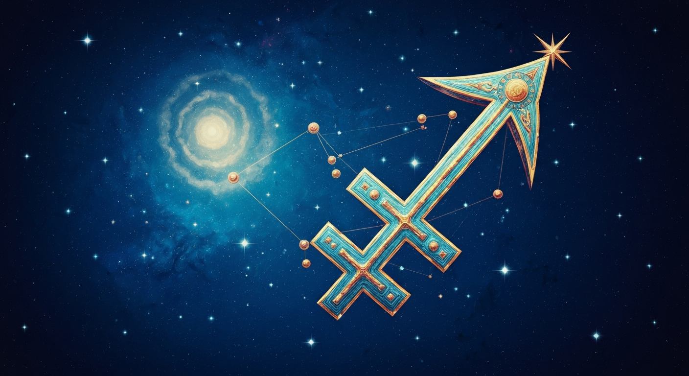 Символ: полумесяц слева от креста. Душа (полумесяц) поднимается над материей (крест). Юпитер - расширение сознания, мудрость, удача.
